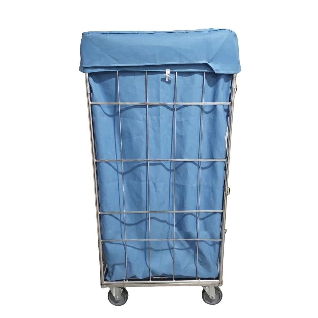 Wysokogabarytowy wózek siatkowy z profesjonalnym pokrowcem wewnętrznym, zaprojektowany do intensywnego transportu prania w pralniach przemysłowych i dużych obiektach hotelowych.